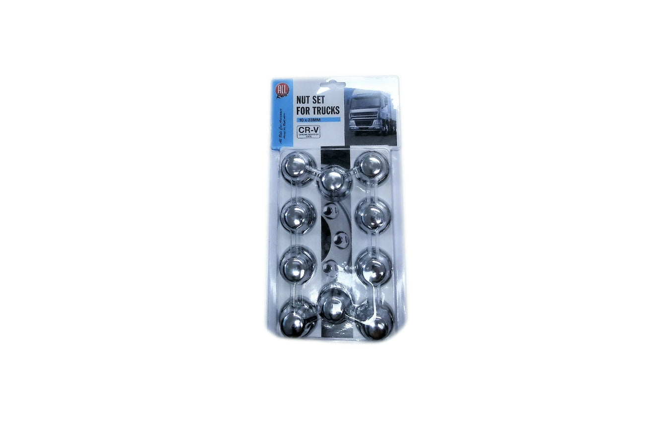 Protect and enhance your truck, bus, or lorry with this set of 10 chrome steel lug nut covers from All Ride. Specially designed for commercial vehicles, these covers shield your wheel nuts from dirt, moisture, and rust while giving your wheels a polished, stylish look. Each pack contains 10 covers, perfectly suited for a single wheel, making it a convenient solution for vehicle maintenance.